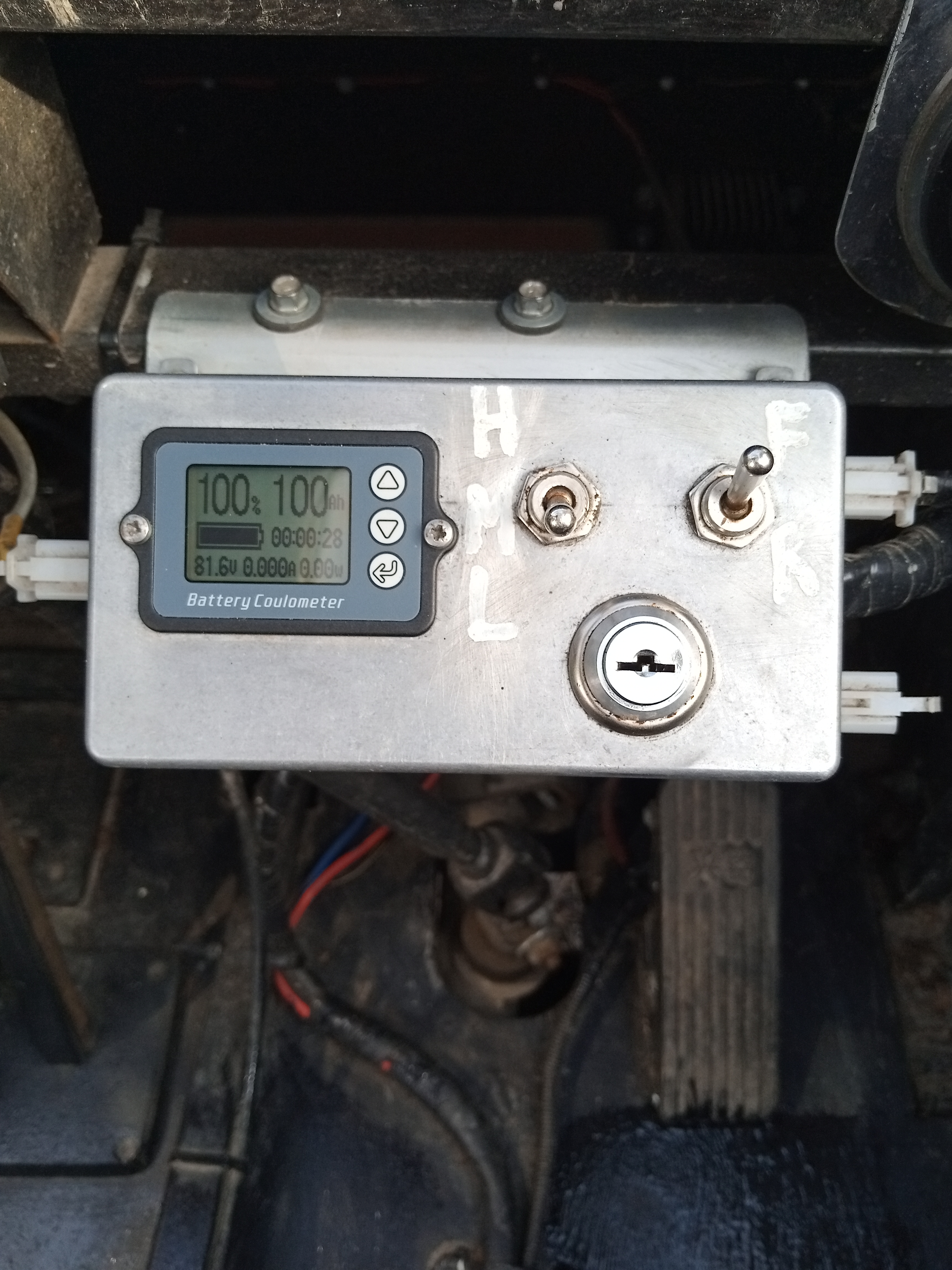 Ключ включения электропитания, трехскоростной переключатель, переключатель заднего хода и ваттметр, собраны в единый блок на панели управления, справа от рулевой колонки.