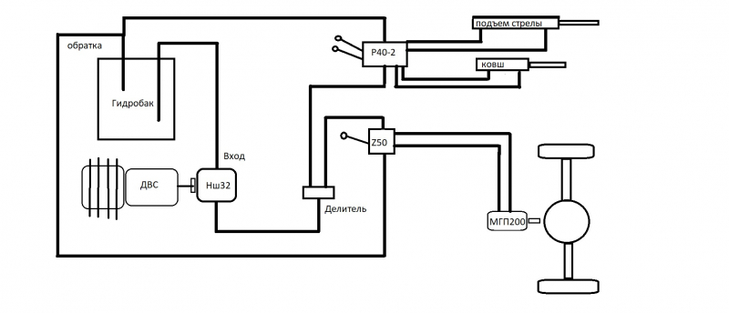 P.S.Ранее об этом неоднократно напоминали, в Вашей схеме НШ крутится дай бог 300-400 об/мин, он выдает 7-8л/мин и разумеется не будет никакого "деления в делителе". Раскрутите ДВС до 5-6т.об/мин и сразу все закрутится-задвигается, если конечно не заглохнет от нагрузки:)))